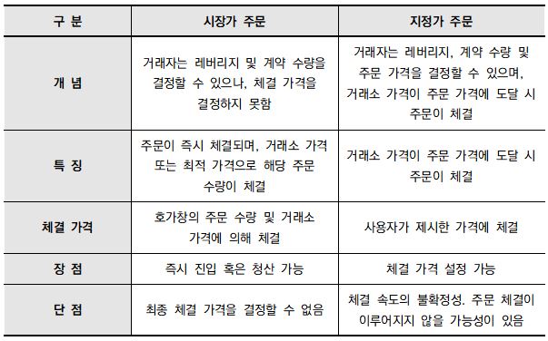주식 시장가 지정가 매수 매도의 차이점, 개념, 특징, 체결 가격, 장단점을 다음의 표로 정리하였습니다.